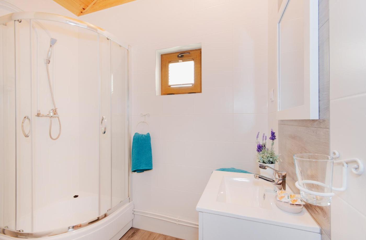 W domu wakacyjnym zapewniono taras, sypialnię (1), salon z telewizorem z płaskim ekranem, kuchnię ze standardowym wyposażeniem, takim jak lodówka i płyta kuchenna, a także łazienkę (1) z prysznicem. Goście mogą podziwiać widok na ogród.