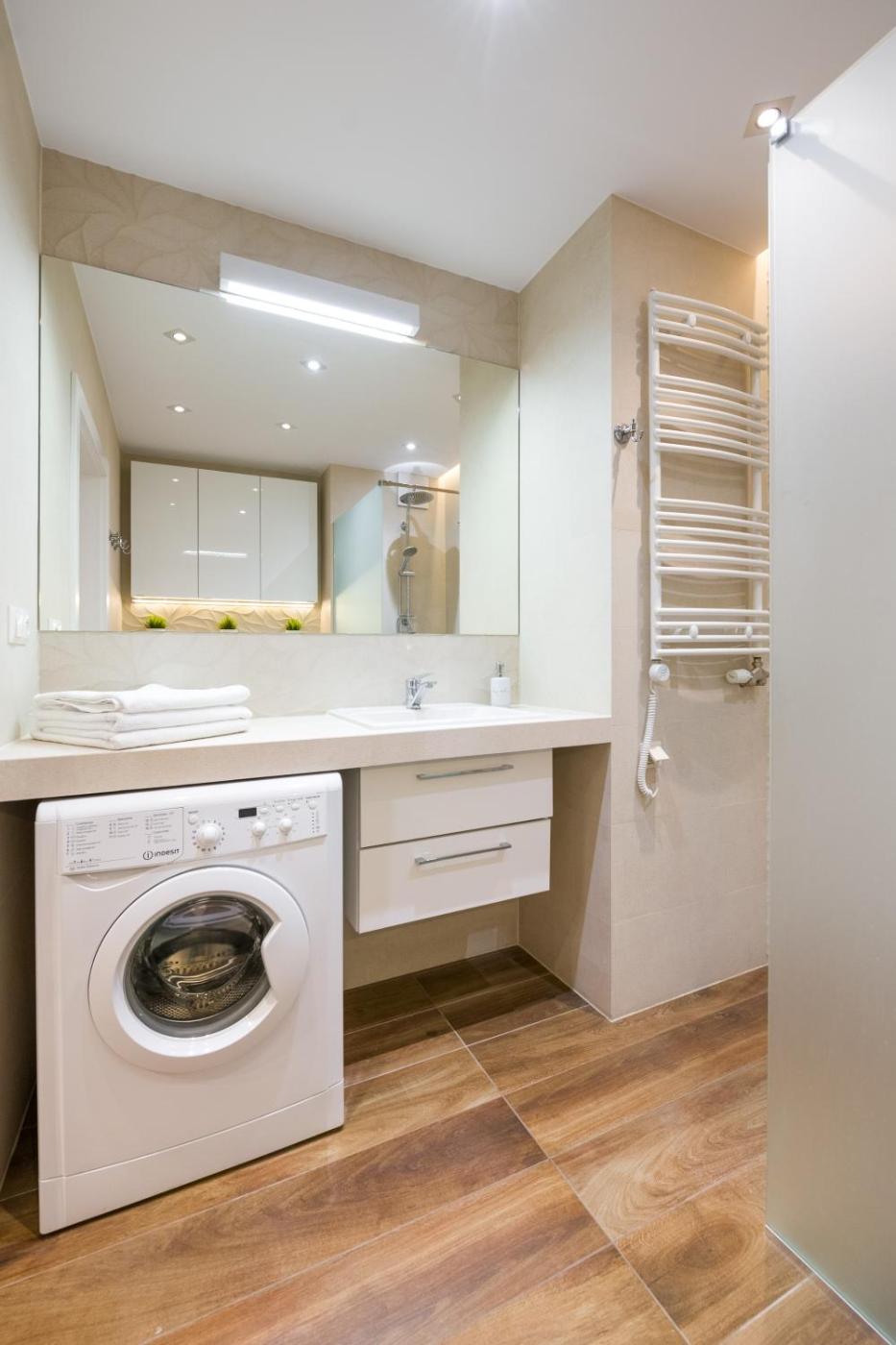 Apartament z 1 sypialnią. This air-conditioned apartment features 1 living room, 1 separate bedroom and 1 bathroom with a walk-in shower. The fully equipped kitchen features a stovetop, a refrigerator, a dishwasher and kitchenware. This apartment has a washing machine, soundproof walls, flat-screen TV with streaming services, as well as chocolate for guests. The unit has 3 beds. Apartament - 4 osobowy. Powierzchnia pokoju ok.: 40 mkw.